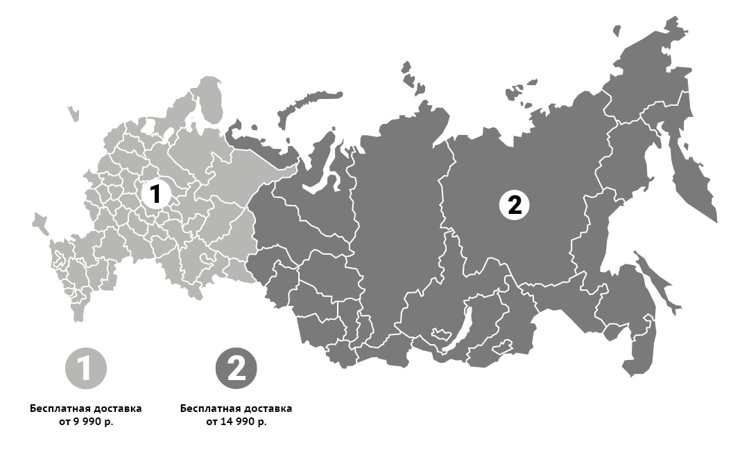 - БЕСПЛАТНО доставка заказа стоимостью от 9 990 руб. в зависимости от региона(ПОСМОТРЕТЬ КАРТУ)